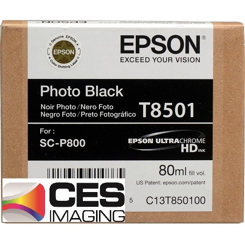 Refill your professional SureColor P800 Inkjet Printer with this 80 ml T850100 UltraChrome HD Photo Black Ink Cartridge from Epson. This ink is pigment based for longevity and for accurate color reproduction.